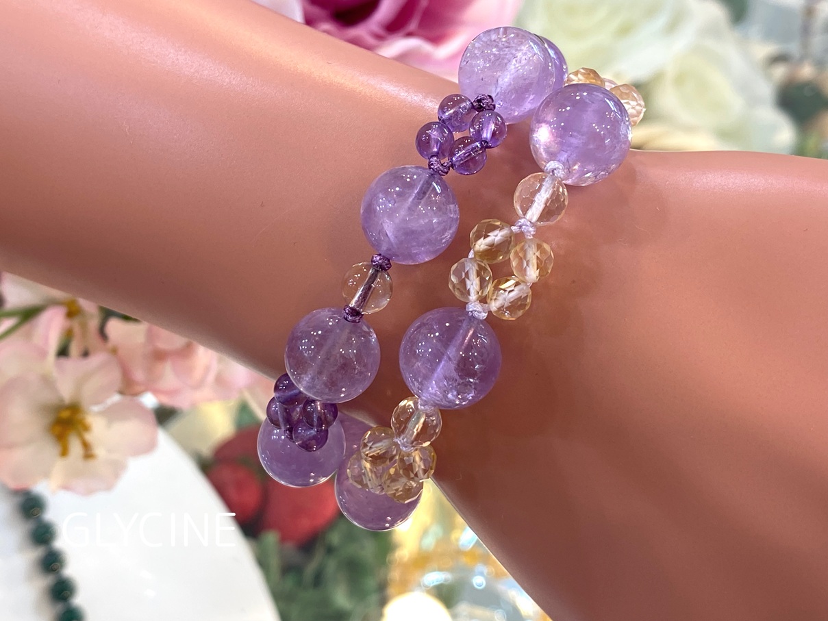 ご紹介中の新作のパワーストーンブレスレットに使ったアメジストとシトリンはこちらです。