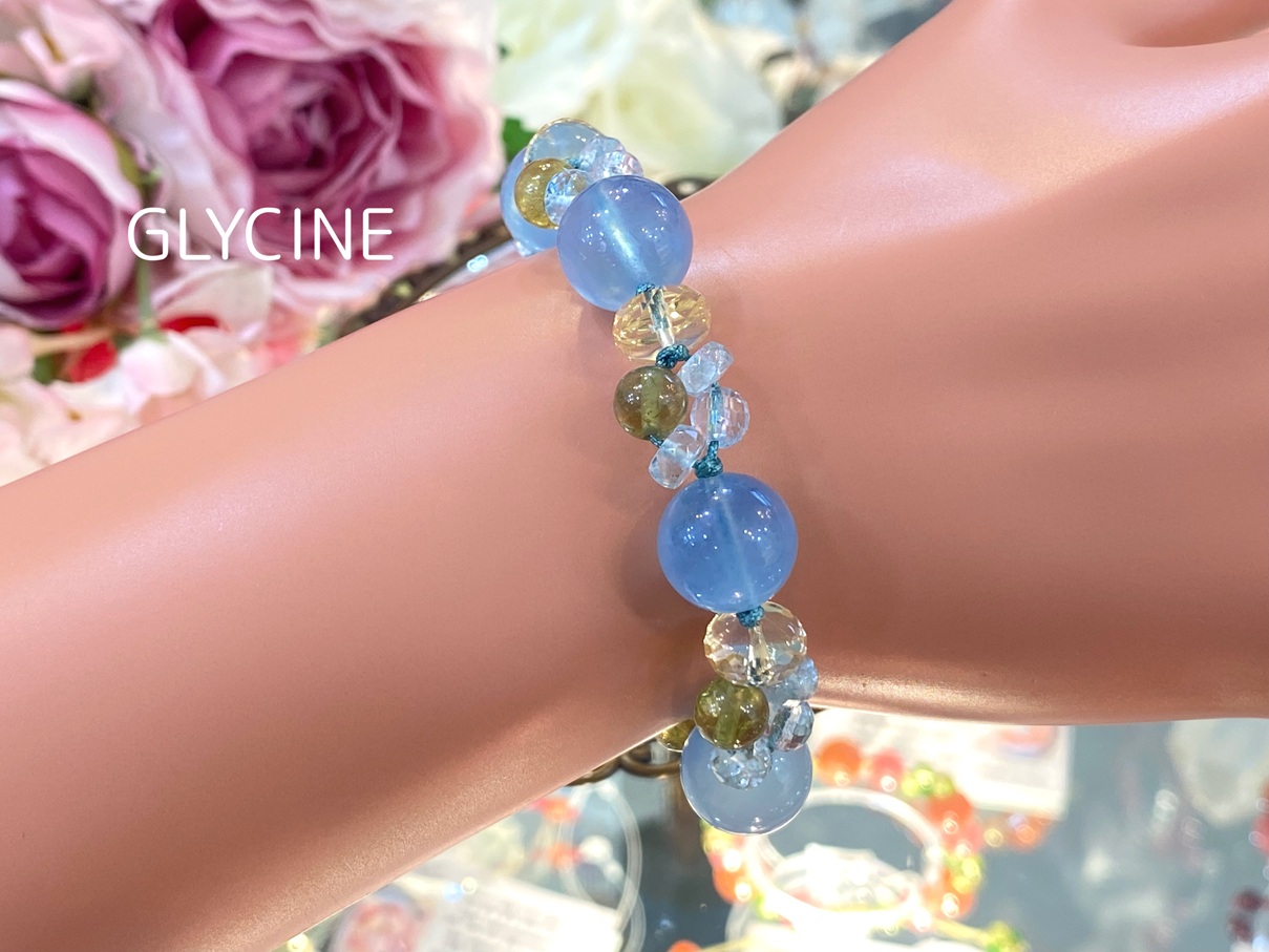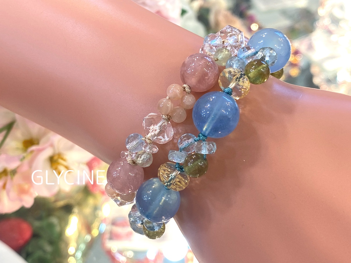 お洒落で大人っぽい水色のパワーストーンブレスレットに仕上げたかったんで(*^^*)