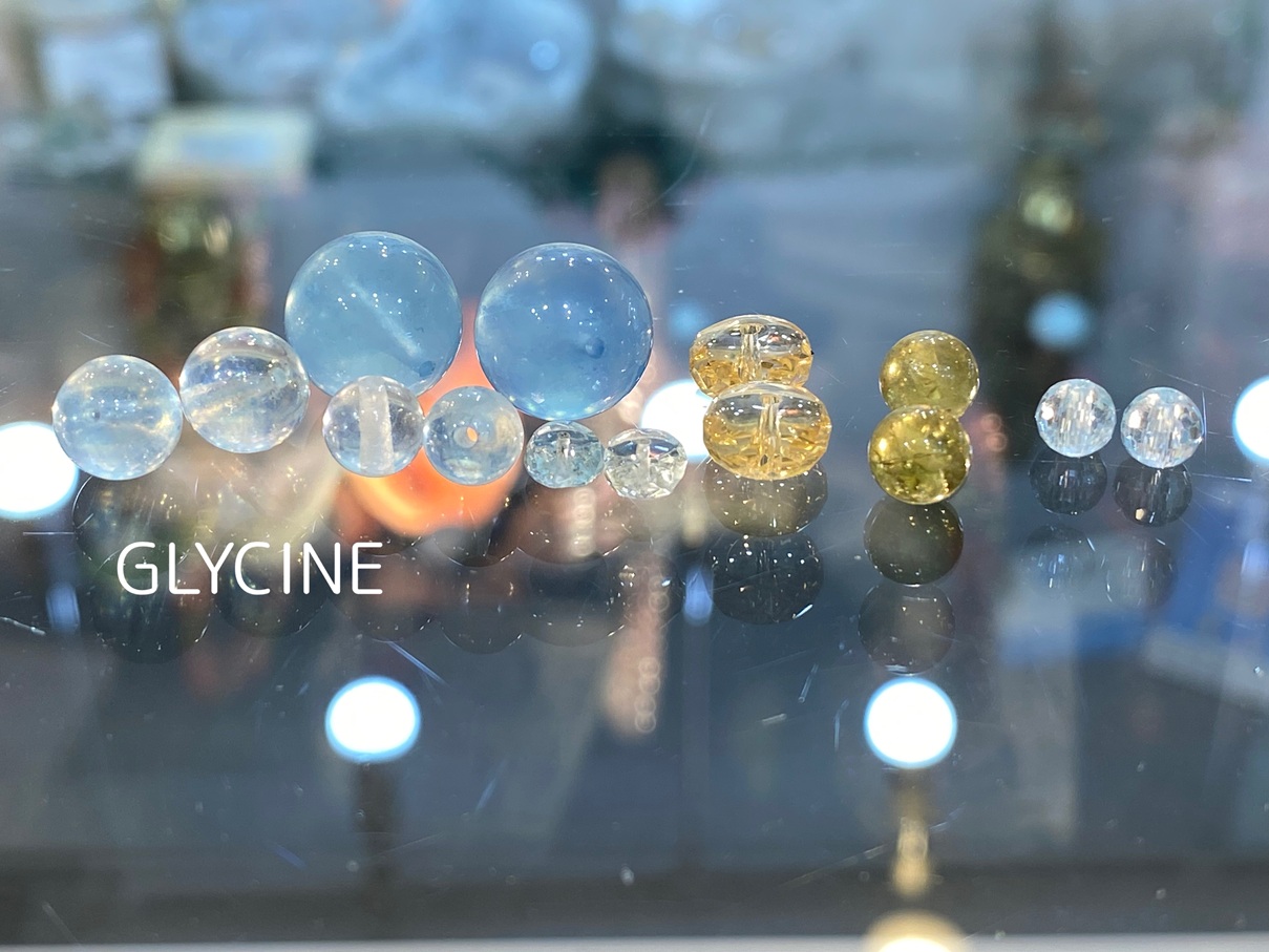 どの粒も透明感の有る美しい水色です。