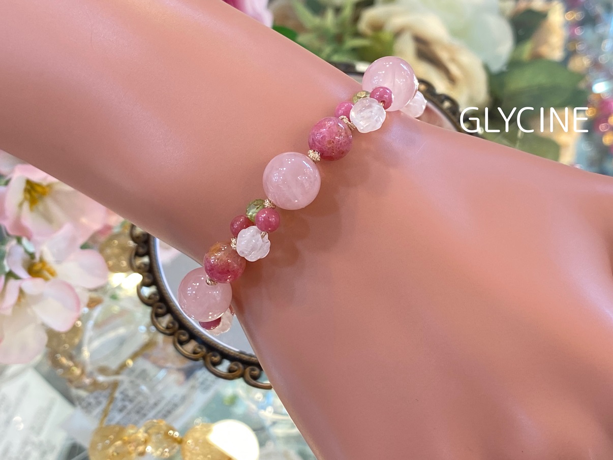 昨日紹介した新作のパワーストーンブレスレットよりも、軽やかなピンク色になるようにしましたよ。