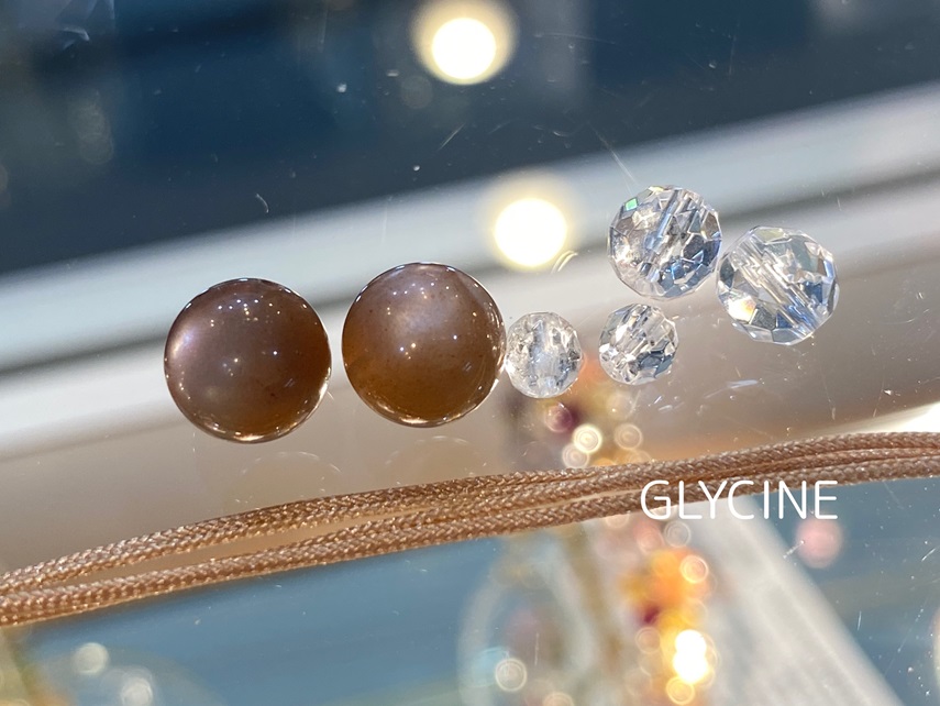 Glycine(グリシーヌ)のゴールド系の紐の中から、ロイヤルミルクティーみたいなお色の紐を選びました。