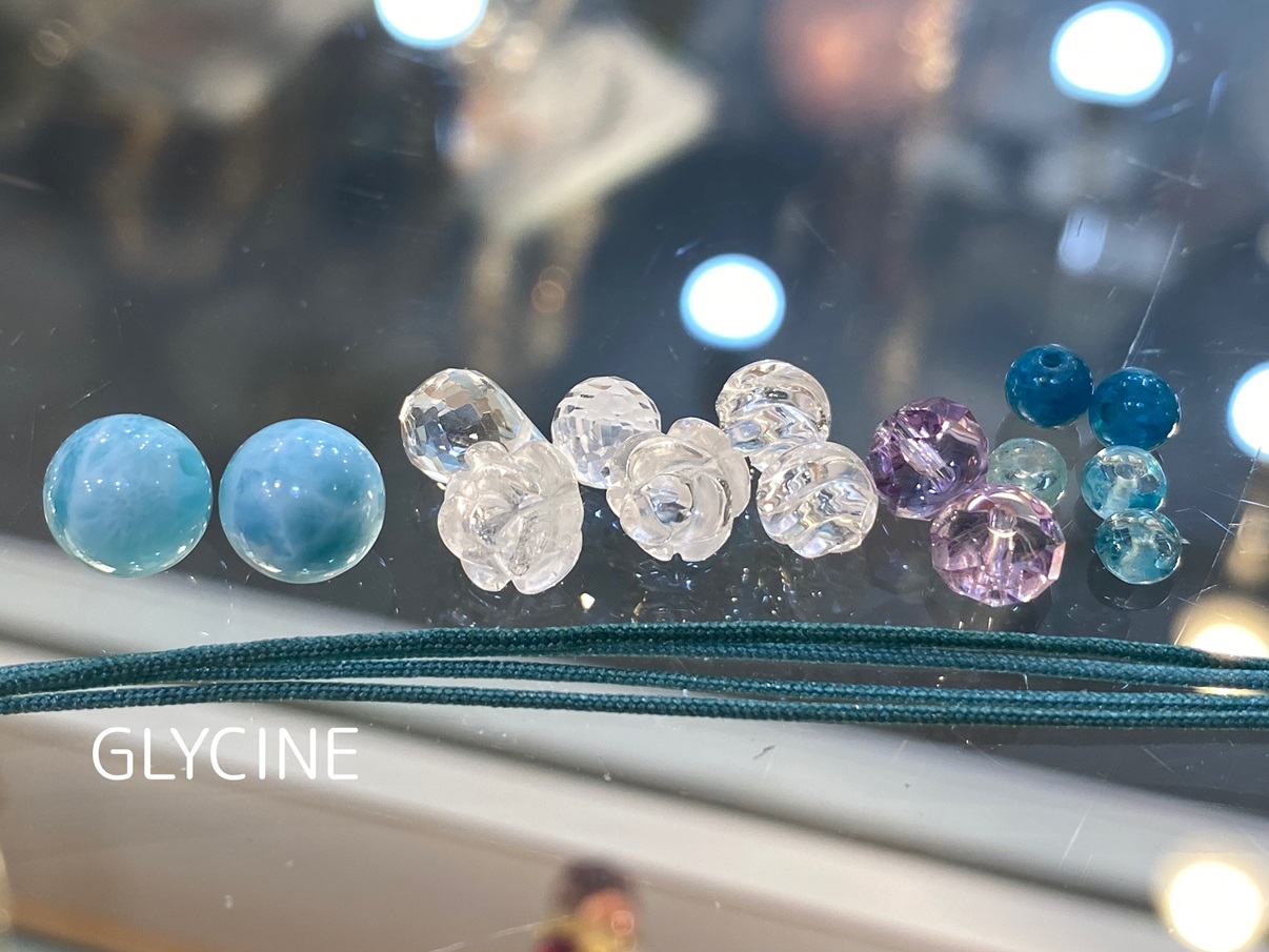 ラリマーに似合うティファニーブルーみたいなお色のGlycine(グリシーヌ)の紐を選んで仕上げましたよ(*^^*)