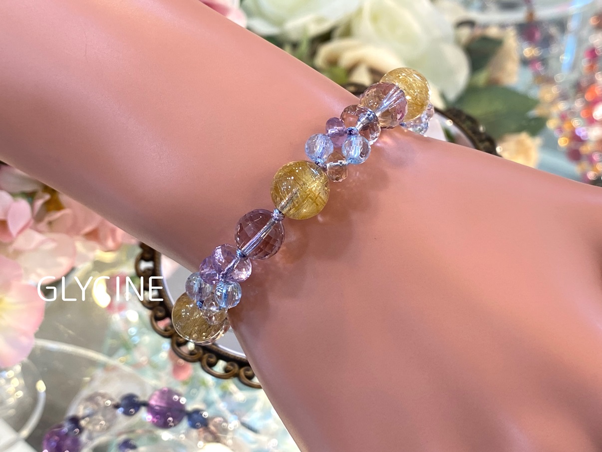 先日から紹介させていただいているルチルクォーツとアメトリンのパワーストーンブレスレットたちとは違った魅力のパワーストーンブレスレットでございますよ( *´艸`)