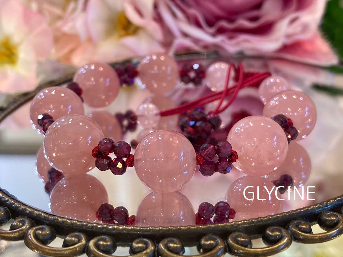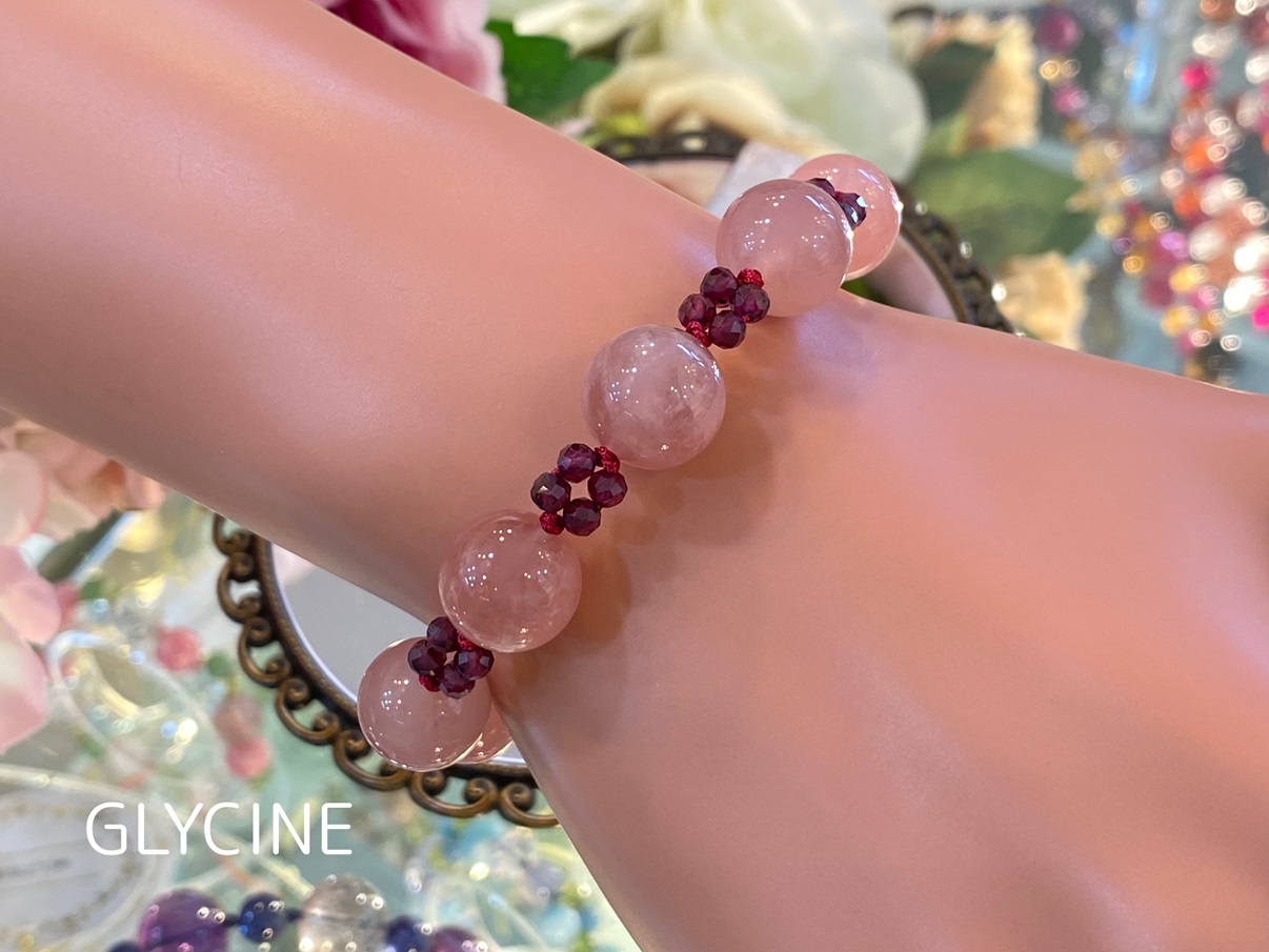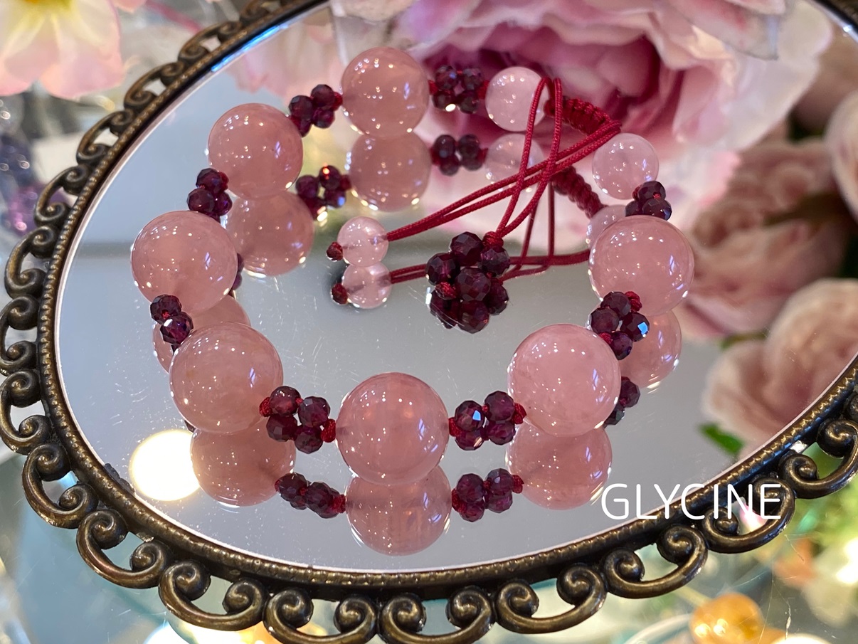 ディープローズクオーツとロードライトガーネットの2種類の天然石でデザインしたパワーストーンブレスレットでございます。