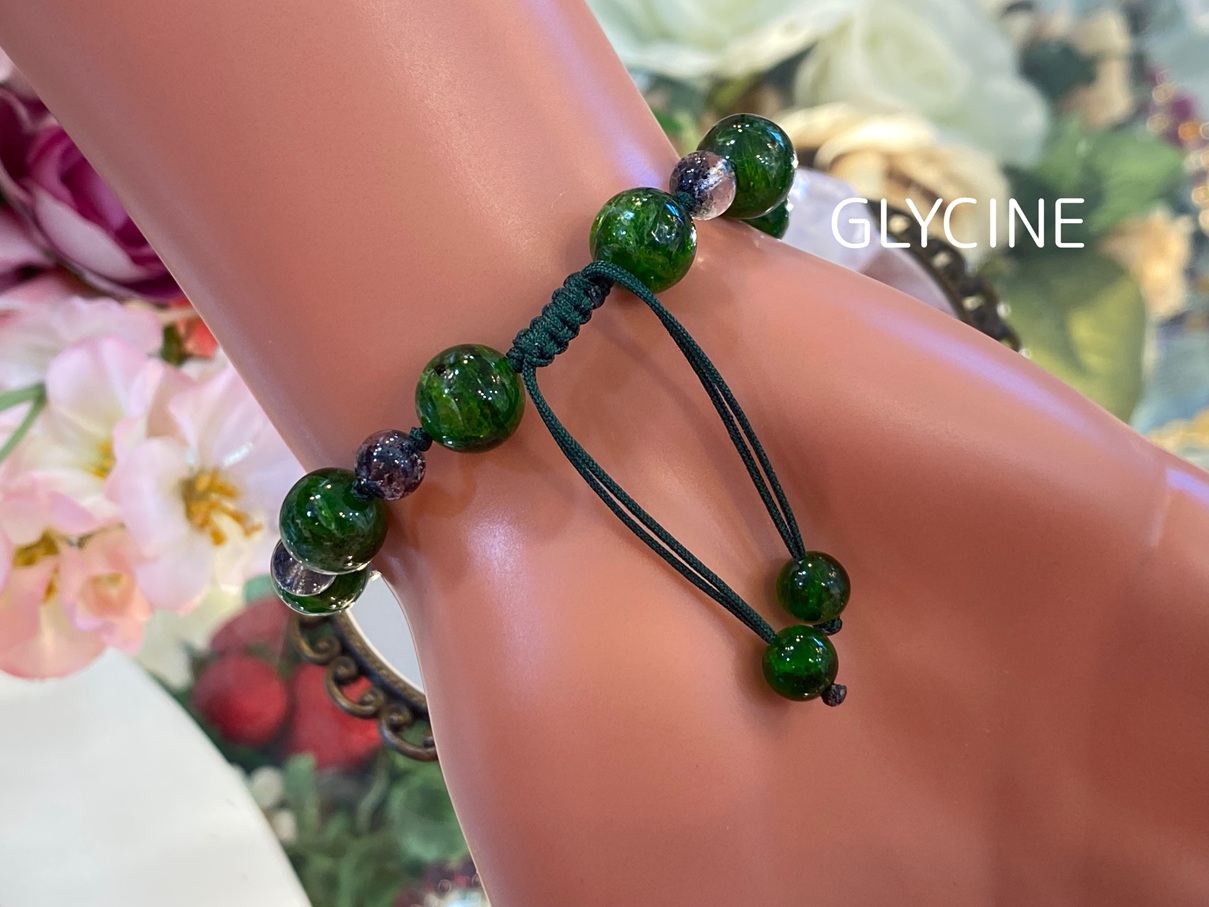 お洒落なものが大好きなGlycine(グリシーヌ)のお客様たちからご注目いただく事も多いのですが、こんな石言葉がある天然石なんですよ♪