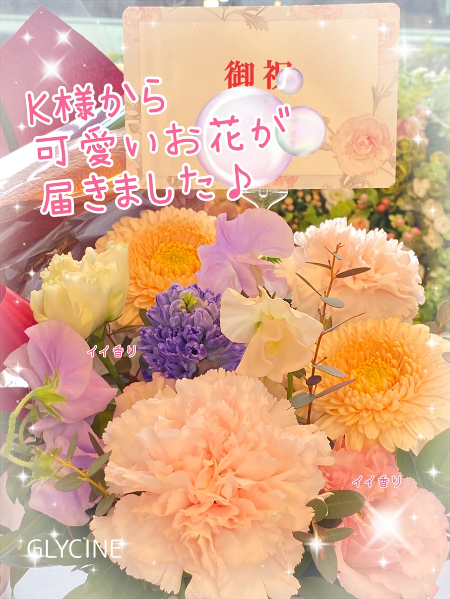カワイイお色のお花のアレンジが届きました(*^^*)
