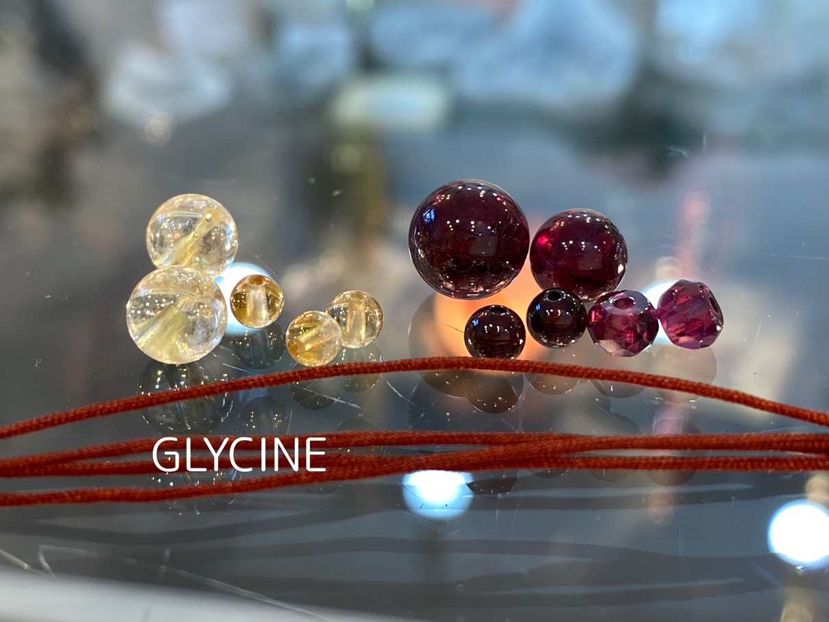 ちなみに、今回使っている一番大きな丸玉の高級な普通の赤いガーネットはマラヤガーネットと呼ばれることもあるガーネットです。この呼び名は良い呼び名ではないようなので、Glycine(グリシーヌ)ではあまり使わないようにしています。