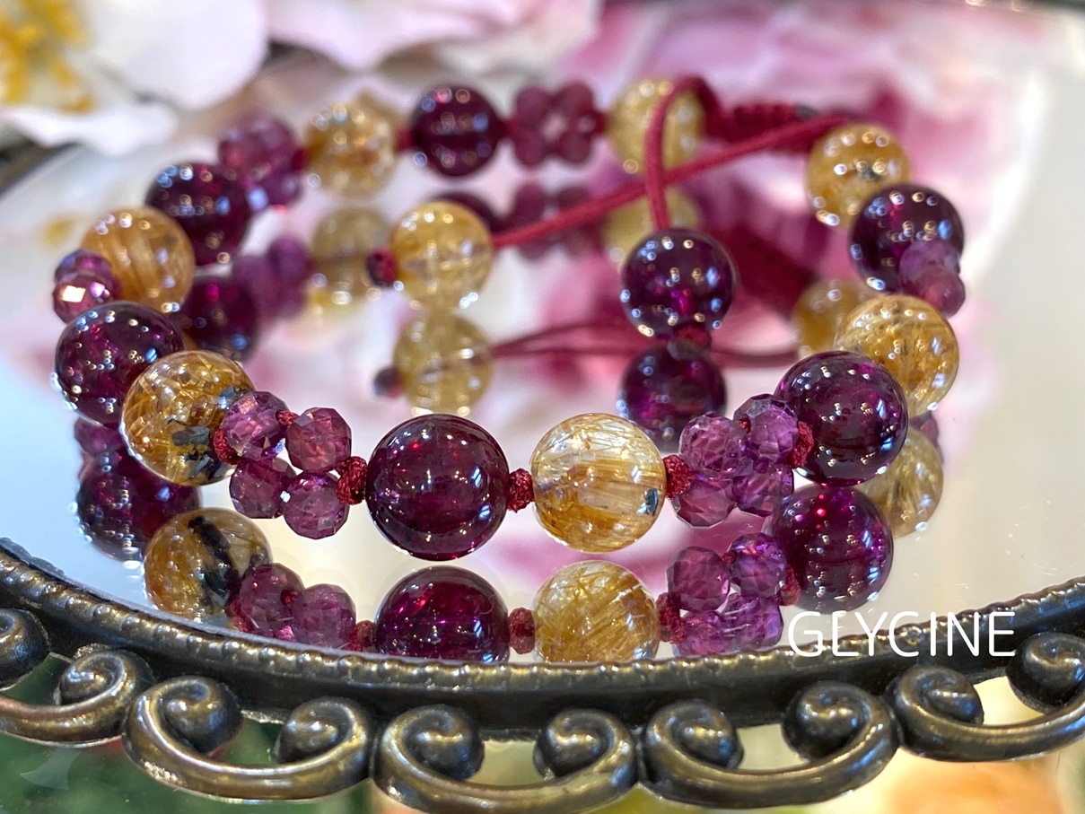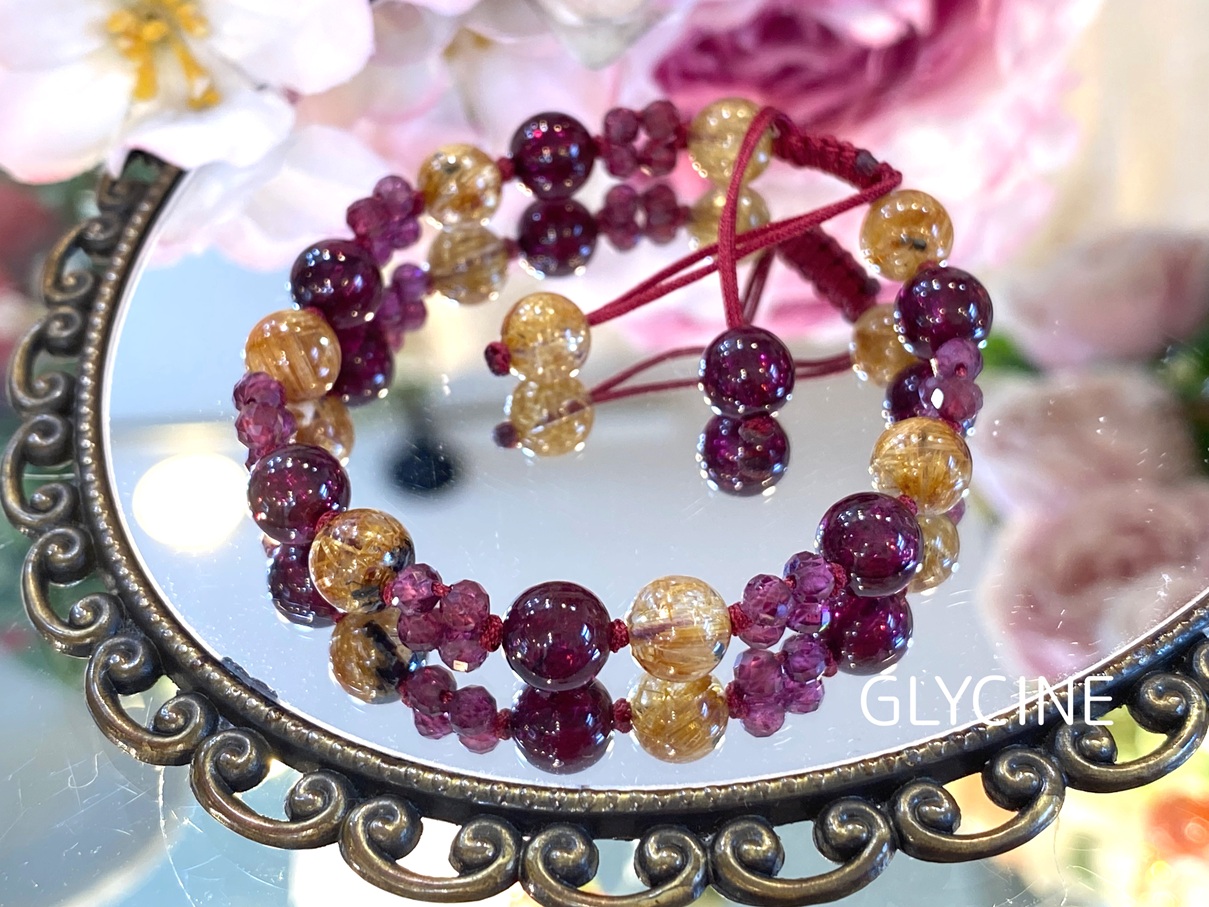 ガーネットとルチルクォーツの2種類の天然石でデザインしたパワーストーンブレスレットです。