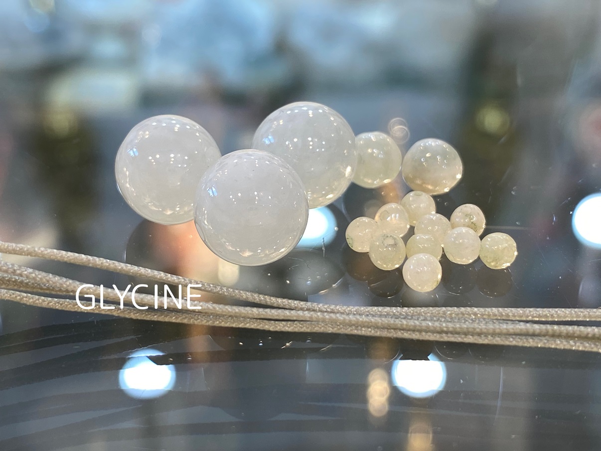 大きさの違う4種類の丸玉の翡翠(ジェダイド)を選びました。
