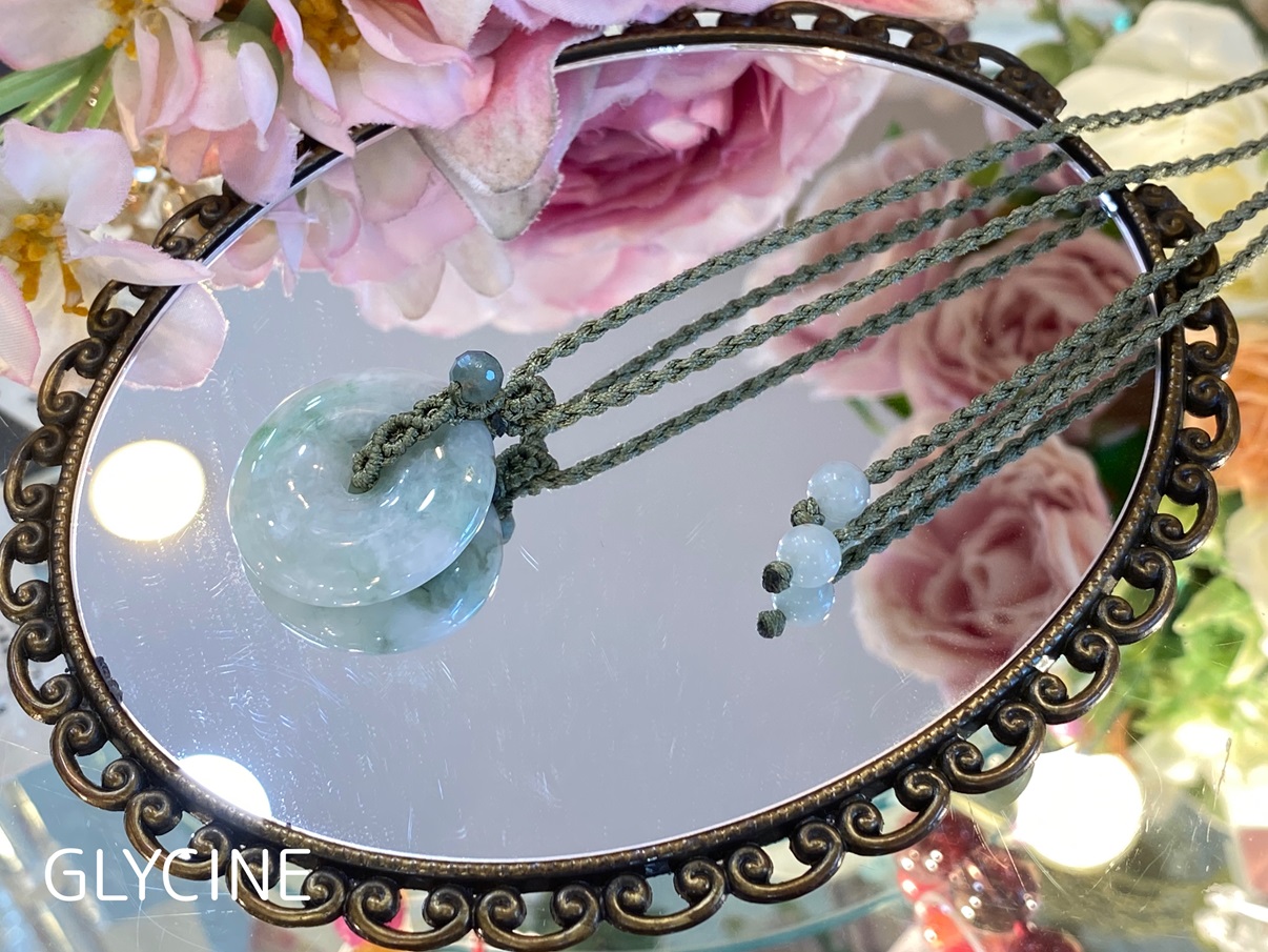 今回、良いお色のピーディスクモチーフの翡翠(ジェダイド)とたくさん出会ったので、いろんなデザインで翡翠のネックレスを作らせていただきました!