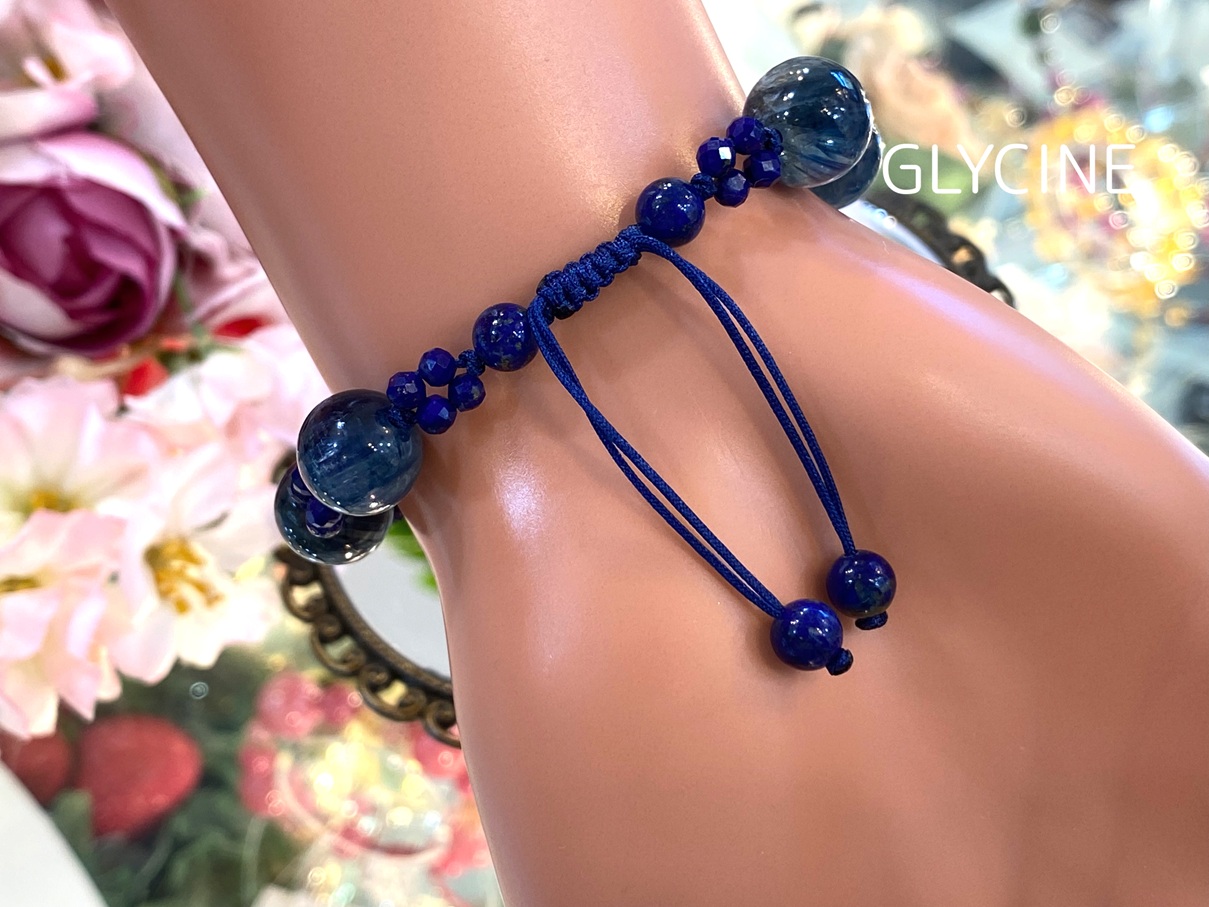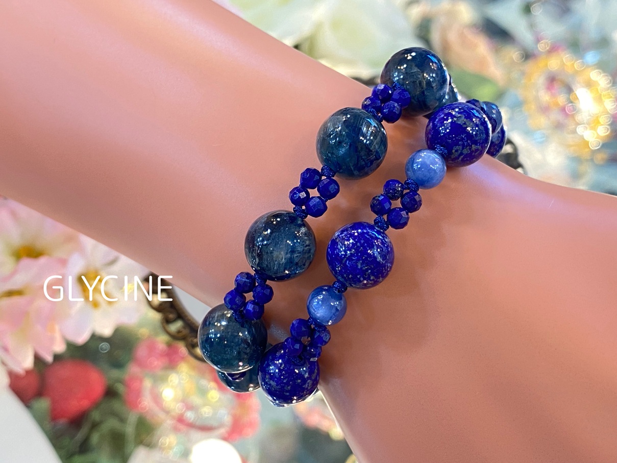 ラピスラズリとカイヤナイトの2種類の天然石でデザインした新作のパワーストーンブレスレット2本。