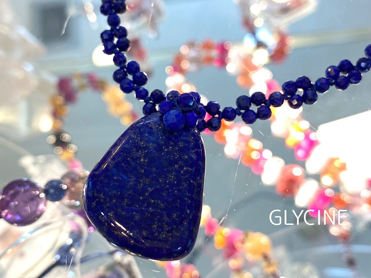 不規則な形のラピスラズリをネックレストップにしてデザインしたものを好んでデザインしました。