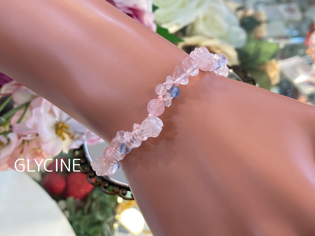 ハートモチーフのローズクォーツをたっぷり使いました。