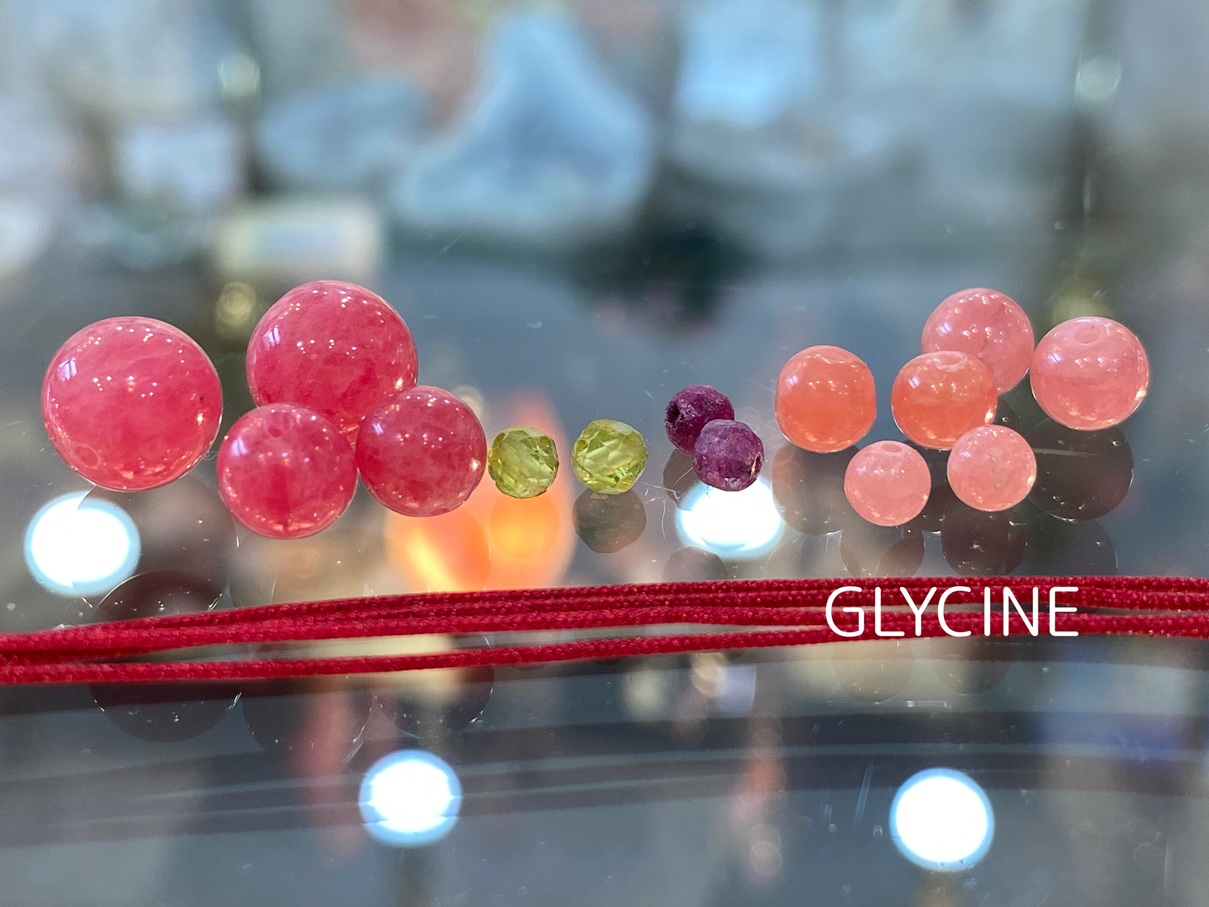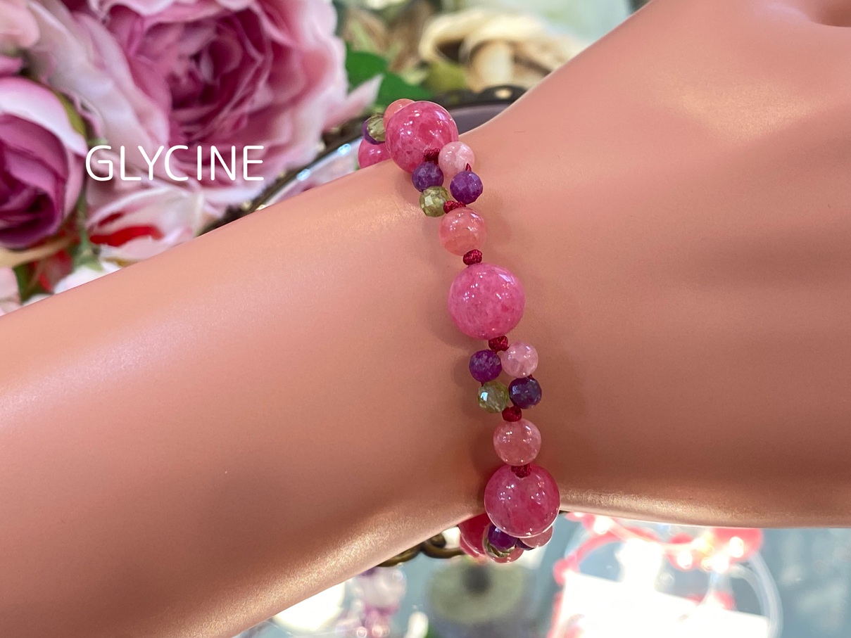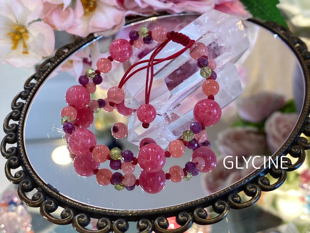 ご紹介中の新作のパワーストーンブレスレットに使ったロードナイト、ロードクロサイト(インカローズ)、ルビー、ペリドットはこちらです。