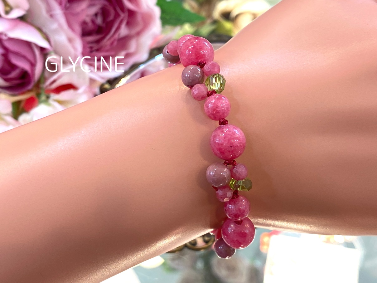 ご紹介中の新作のパワーストーンブレスレットに使ったロードナイトとペリドットはこちらです。
