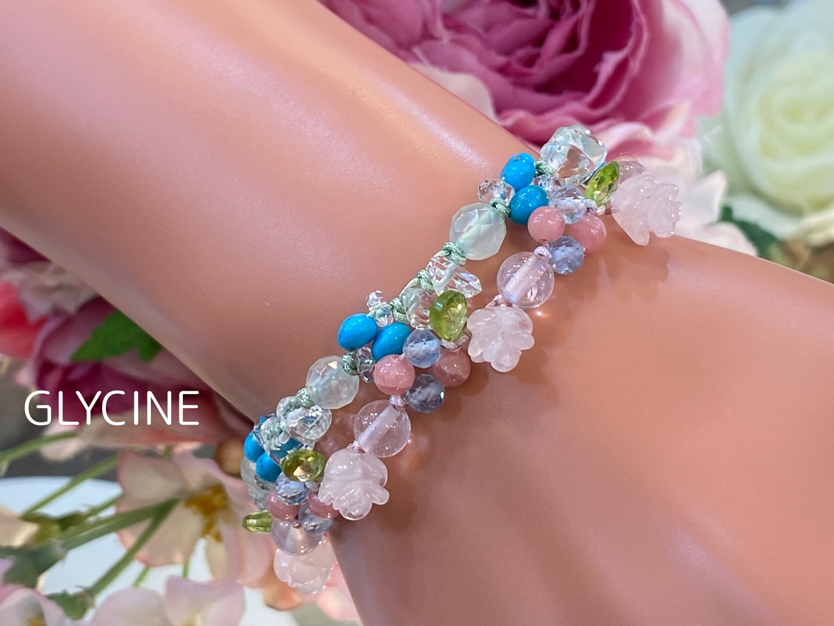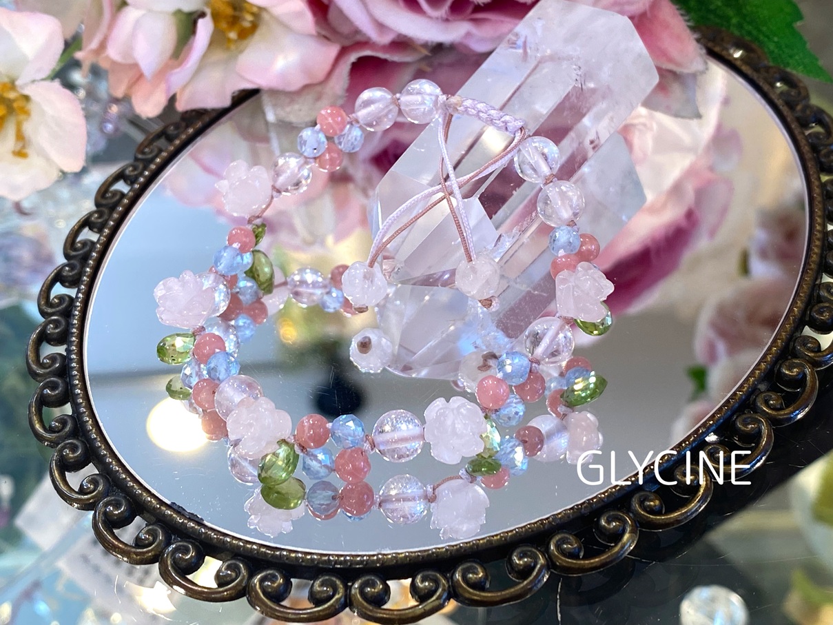 ご紹介中の新作のパワーストーンブレスレットに使ったローズクォーツ、ロードクロサイト(インカローズ)、アクアマリン、ペリドットはこちらです。