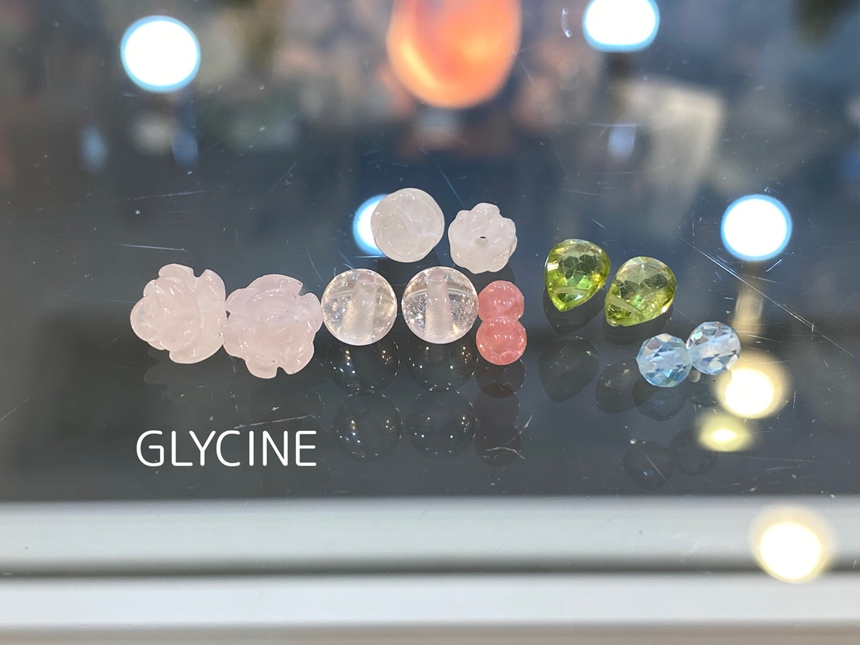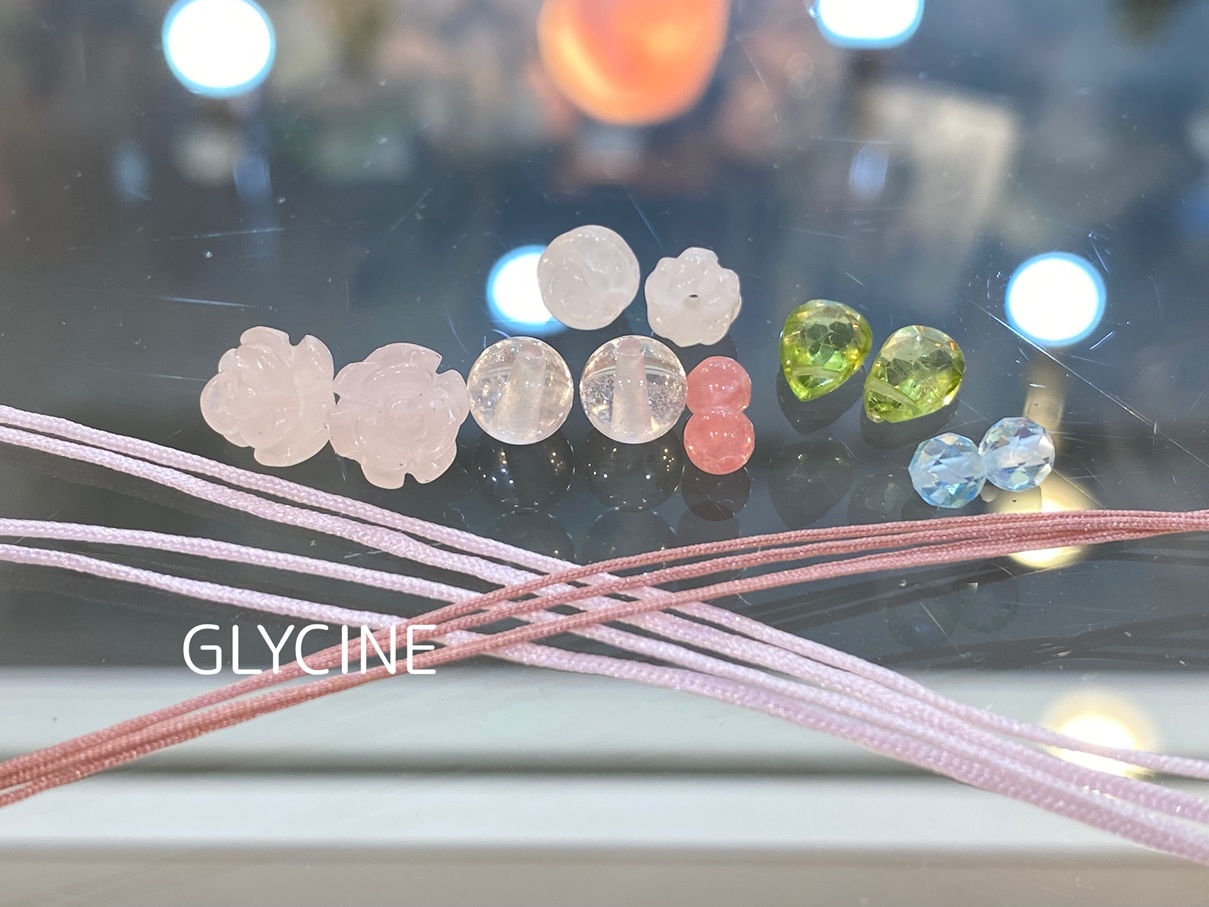 透明感の有る水色の小粒の丸玉にカットが施された綺麗な粒を1種類選びました。