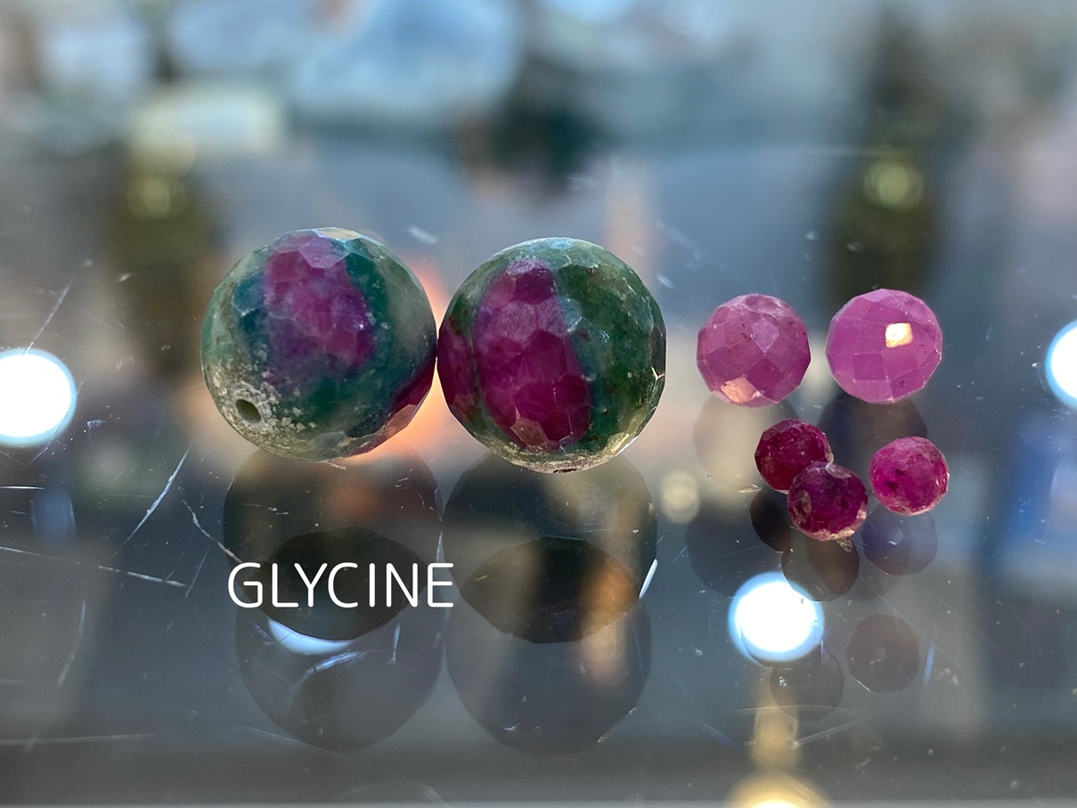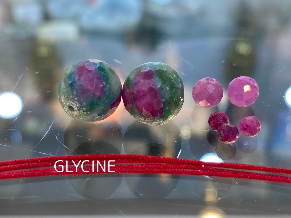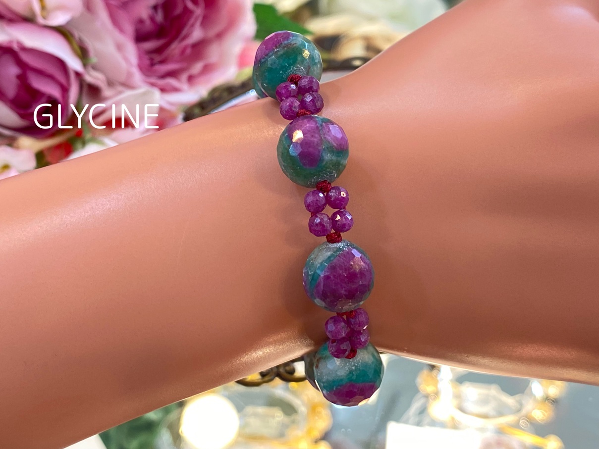 ご紹介中の新作のパワーストーンブレスレットに使ったルビーインゾイサイトとルビーはこちらです。