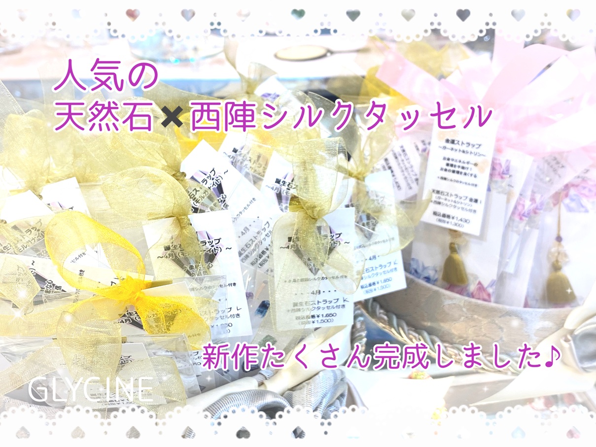 天然石と西陣シルクのタッセルで作った『Glycineの天然石ストラップ(石のメッセージ付)』です!