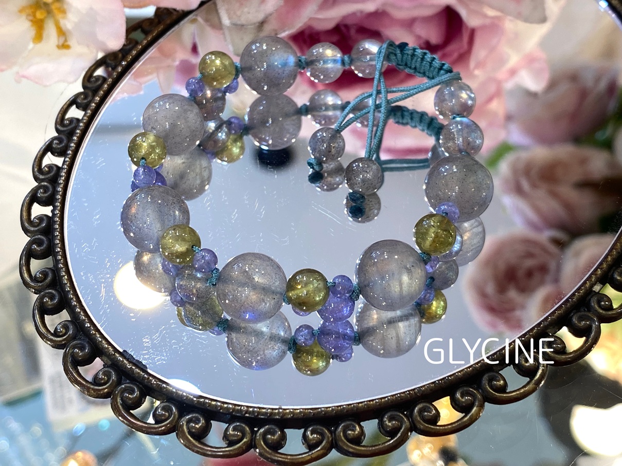 ラブラドライト、ガーネット、タンザナイトの3種類の天然石でデザインしたパワーストーンブレスレットです!