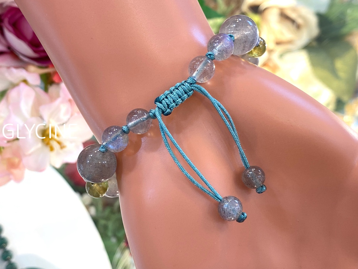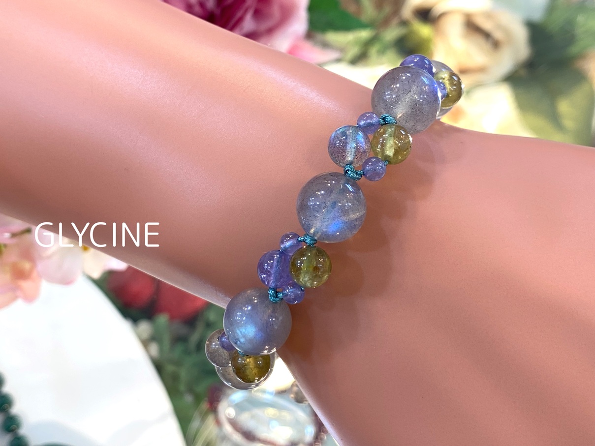 ラブラドライトを主役にしてデザインしたパワーストーンブレスレットですが、