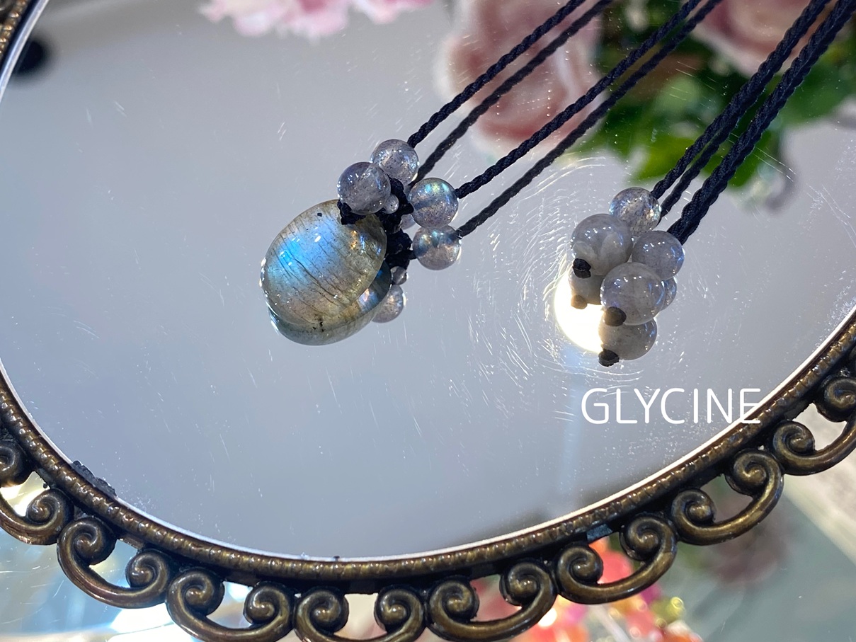ネックレストップのバチカンには小粒の丸玉のラブラドライトを飾って、