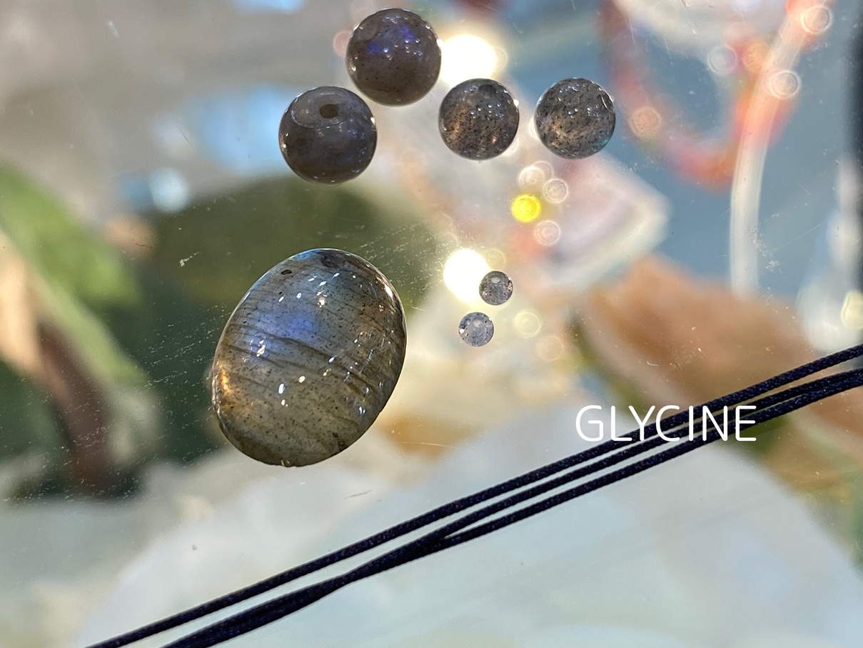 小粒の丸玉のラブラドライトを並べて、雪だるまみたいな見た目にしていますよ。