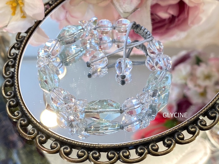 透明感のある水晶と一緒に編んでいるので、