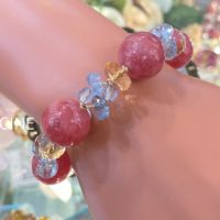 大粒ピンク♪ロードクロサイト、アクアマリン、トパーズ、シトリンのパワーストーンブレスレット①