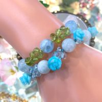 今日紹介させていただく新作の天然石アクセサリーは、 トパーズとアマゾナイトと翡翠(ジェダイド)の3種類の天然石を使ってデザインしたパワーストーンブレスレットでございます。 &nb …