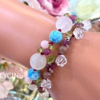 薔薇水晶がいっぱい♪ピンクトルマリン、ペリドット、水晶のパワーストーンブレスレット②