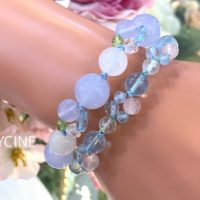 今日紹介させていただく新作の天然石アクセサリーは、 アクアマリン、トパーズ、プレナイト、ローズクォーツの4種類の天然石でデザインしたパワーストーンブレスレットです♪ …