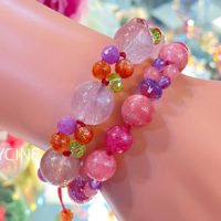 カラフル♪ローズクォーツ、ロードクロサイト、アクアマリン、ペリドットのパワーストーンブレス①
