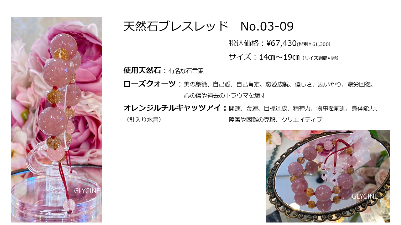使用天然石:ディープローズクオーツ、オレンジルチルキャッツアイ(針入り水晶)